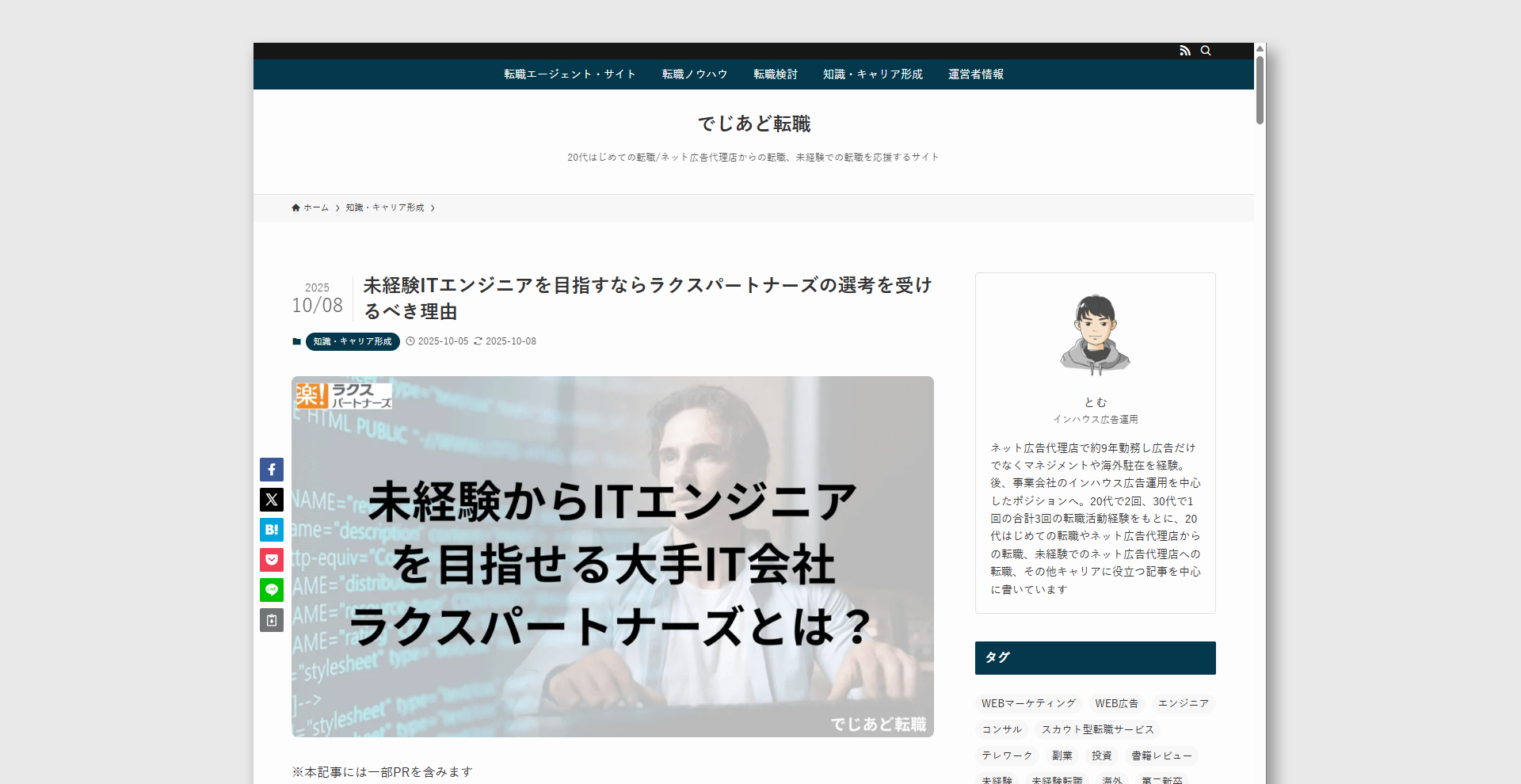 2025.10.14 NEWS 「でじあど転職」にご紹介いただきました!「でじあど転職」に、株式会社ラクスパートナーズをご紹介いただきました。