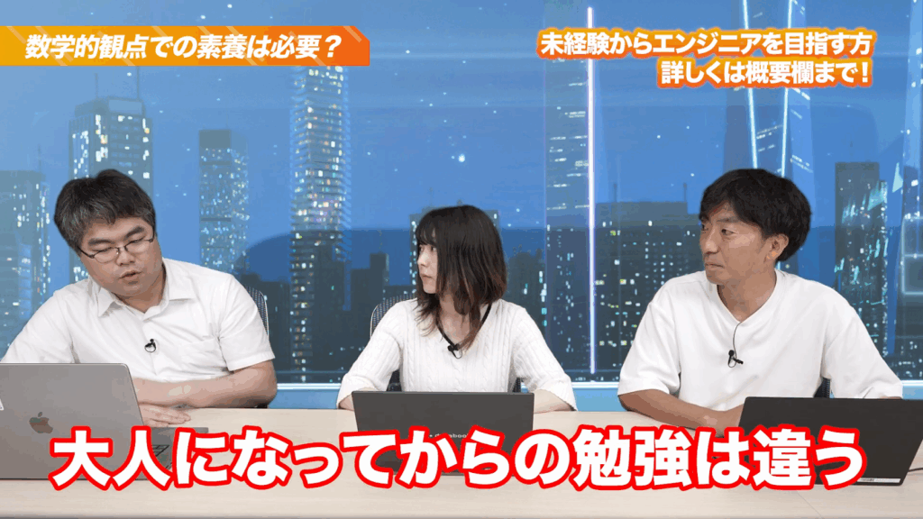 プロとして働くには高校数学以上のレベルが必要になりますが、知識が完璧である必要はありません。重要なのは、「目的があって数学を使う」感覚を持ち、必要な範囲を学ぶ姿勢です。